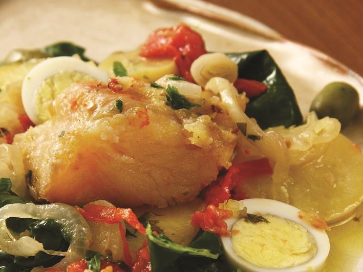 Lombo de bacalhau dourado com legumes #Receitas